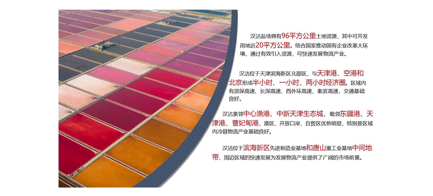 物流作為漢沽鹽場最新的產(chǎn)業(yè)轉(zhuǎn)型發(fā)展方向,將依托東疆港、天津港、曹妃甸港、天津空港四港優(yōu)勢(shì),充分利用區(qū)位特點(diǎn),融入?yún)^(qū)域發(fā)展,重點(diǎn)以物流園區(qū)和冷鏈等專業(yè)物流為方向開展招商合作,以期形成更好的集聚效應(yīng),服務(wù)好京津冀相關(guān)產(chǎn)業(yè),努力實(shí)現(xiàn)企業(yè)轉(zhuǎn)型升級(jí)。